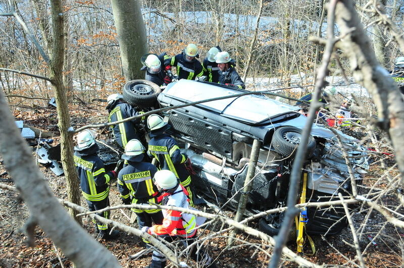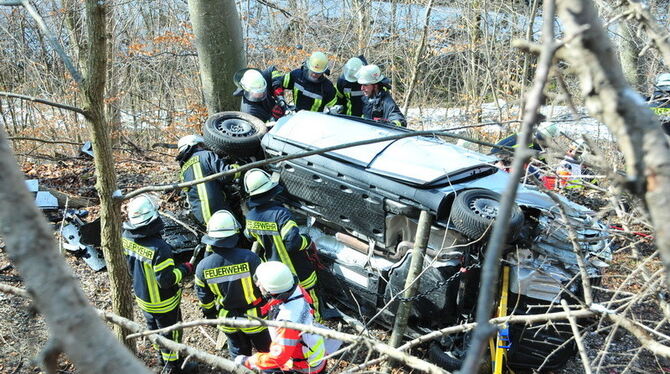 Schwierige Rettungsarbeiten im Hang des Albtrauf bei der Talheimer Steige.