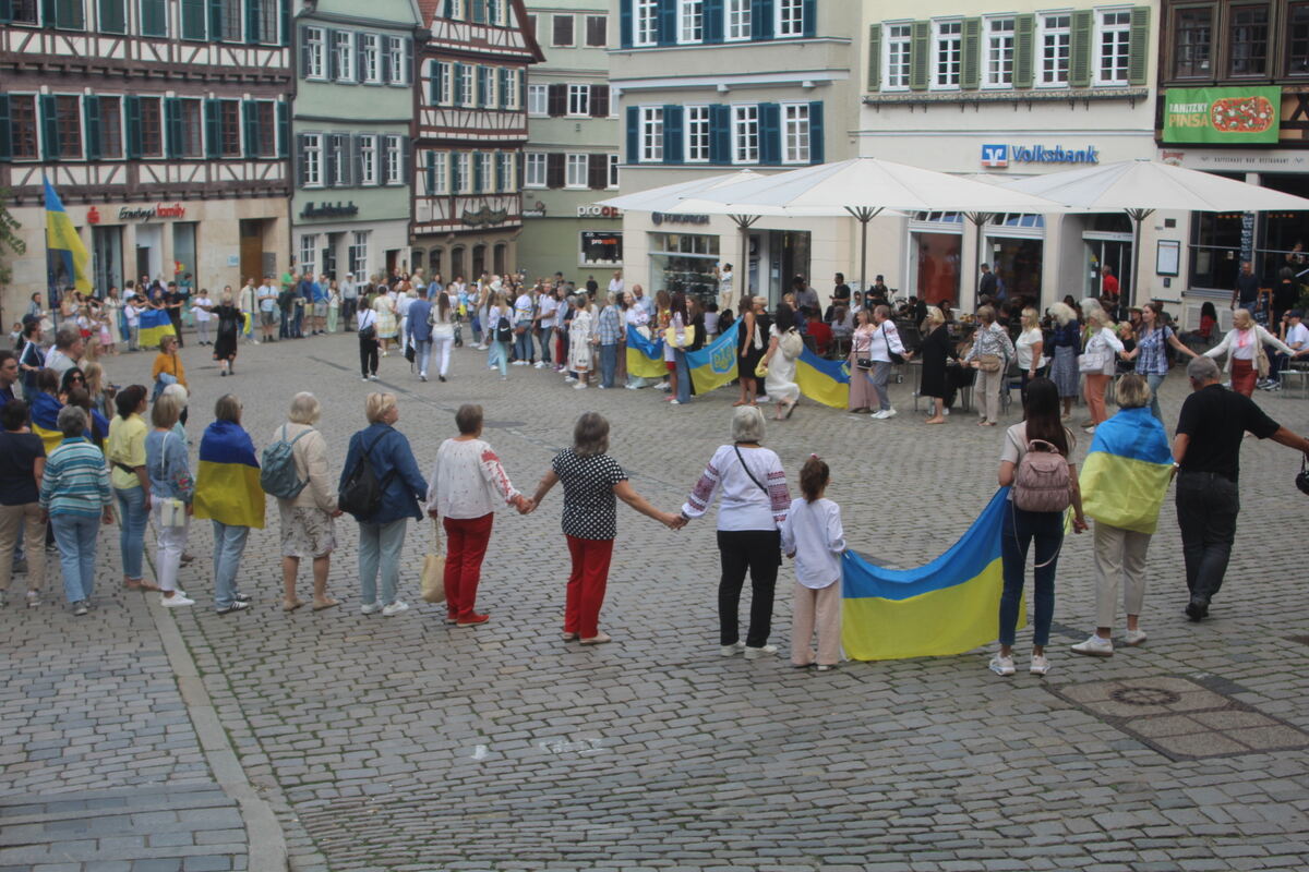 TÜBINGEN. Am Sonntag jährte sich der Unabhängigkeitstag der Ukraine. Doch die Unabhängigkeit des Landes im Südosten Europas ist bedroht: Vor dreieinhalb Jahren, am 24. Februar 2022 überfiel Russland das kleinere Nachbarland, seitdem befinden sich die Brudernationen im Krieg. Mehrere zehntausend Zivilisten, Kinder und Soldaten wurden verletzt oder kamen zu Tode. Millionen Ukrainerinnen und Ukrainer flüchteten ins Ausland.