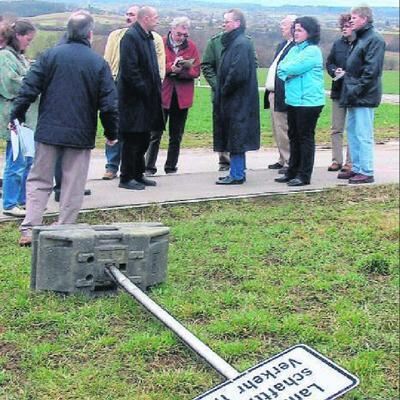 Was tun, wenn ein Verkehrsschild immer umgefahren wird? Entschlussfreudig suchte der Ämter- und Behördentross bei der Verkehrsschau nach Lösungen.