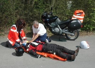 Erste-Hilfe-Auffrischungskurs für Motorradfahrer: Die DRK-Ärztin Lisa Federle (links) und Lehrrettungsassistent Ernst Pflumm bieten ein Notfalltraining an.