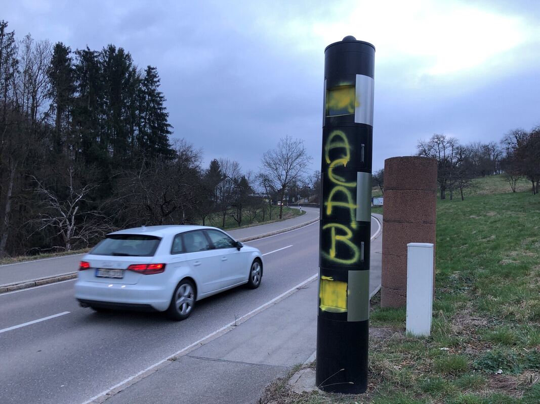 Dieses ist nämlich für den Betrieb von stationären »Verkehrsüberwachungsanlagen«, wie es im Amtsdeutsch heißt, im Landkreis zuständig. Und nicht etwa die Polizei, wovon der Täter offenbar ausgegangen ist. Laut Auskunft der Pressestelle wurde die Anlage bereits in der Nacht vom 16. auf den 17. Februar besprüht. »Das ist aus den letzten Aufnahmen zu schließen.« Das Landratsamt hat umgehend Anzeige erstattet, lässt die Pressestelle wissen. Wie hoch der Schaden ist, lasse sich derzeit noch nicht abschätzen. Unklar ist auch, ab wann der Blitzer wieder blitzen soll. »Die Reinigung/Reparatur ist in Auftrag gegeben«, heißt es vom Landratsamt dazu nur. (GEA)