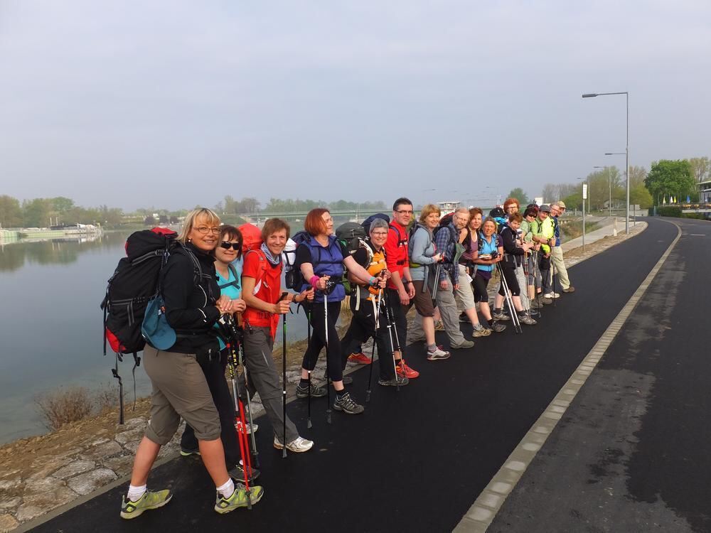Starke Truppe am Rhein: Bei der Pilger-Freizeit der LG Steinlach gilt es gemeinsam den richtigen Weg zu finden. FOTO: PR