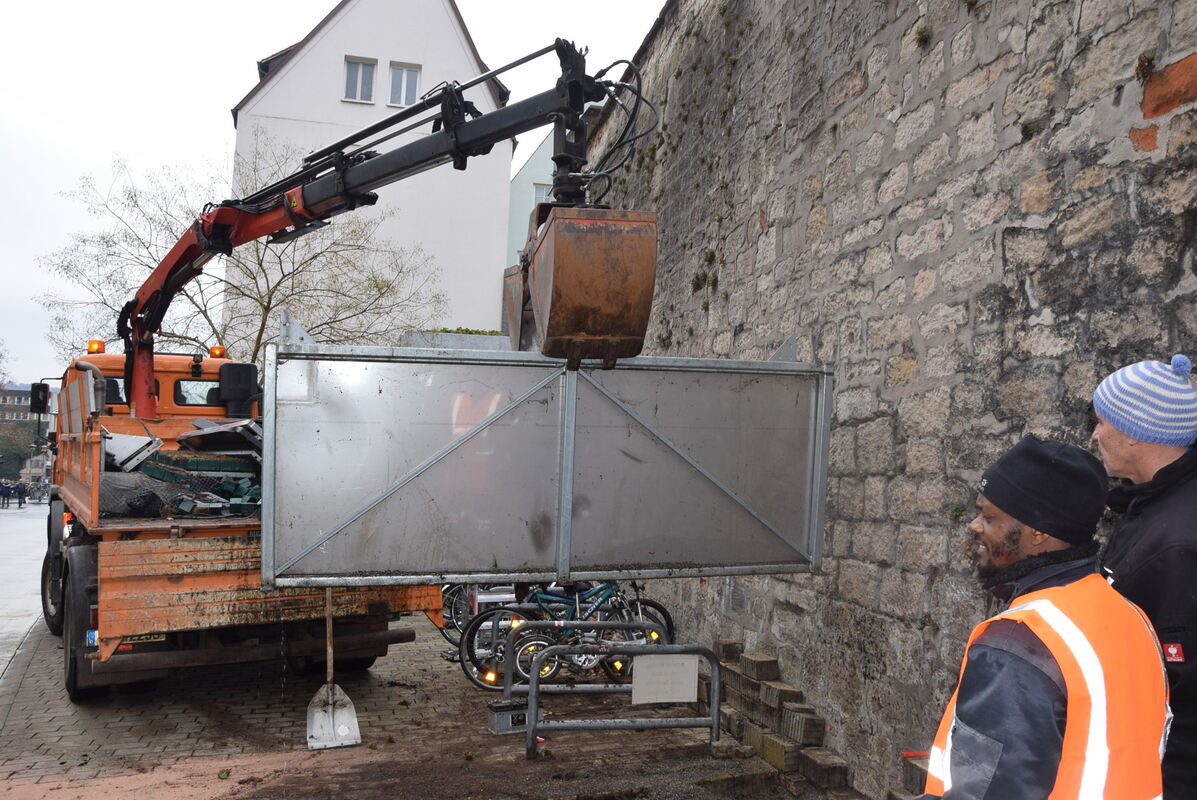 Die Mooswand in der Tübinger Mühlstraße wurde gestern vom Bauhof demontiert. Die erhoffte Schadstoffminderung hat sie nicht bewirken können. FOTO: LENSCHOW