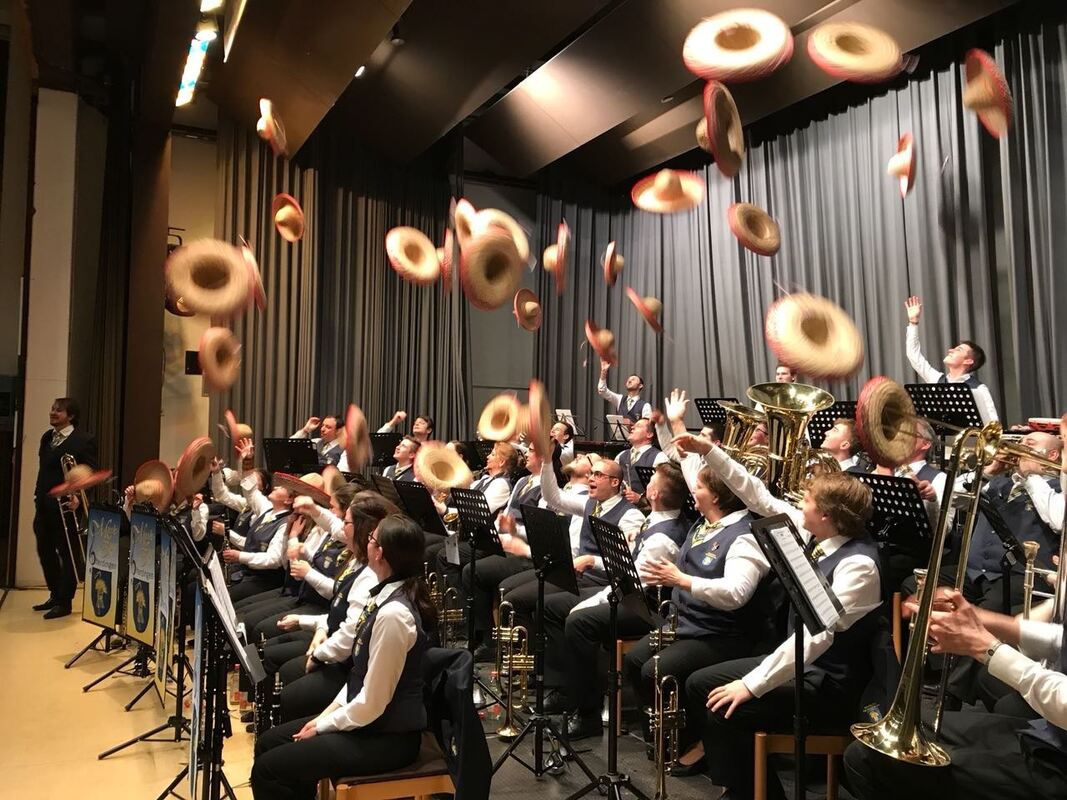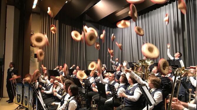 Der Musikzug Ofterdingen konzertiert, die Musiker lassen Hüte fliegen. FOTO: VEREIN