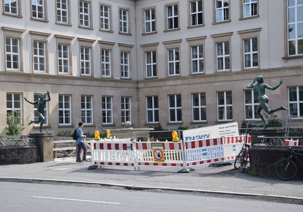 TÜBINGEN. Mit erhobenen Armen schweben zwei Läufer grazil über ihrem Sockel. Bildhauer Ludwig Habich hat die beiden Figuren aus Bronze anmutig und leicht gestaltet. Die Umgebung steht allerdings gegenwärtig in starkem Kontrast zur Absicht des Künstlers. Hinter und unter der Neuen Aula - einem der zentralen Uni-Gebäude in Tübingen - wird seit Monaten gebaut.