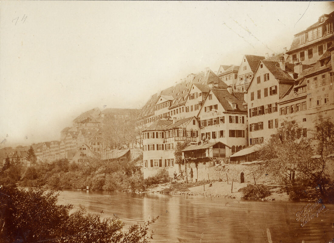 Ein altes Foto vom Neckar und der Neckarfront mit Hölderlinturm.