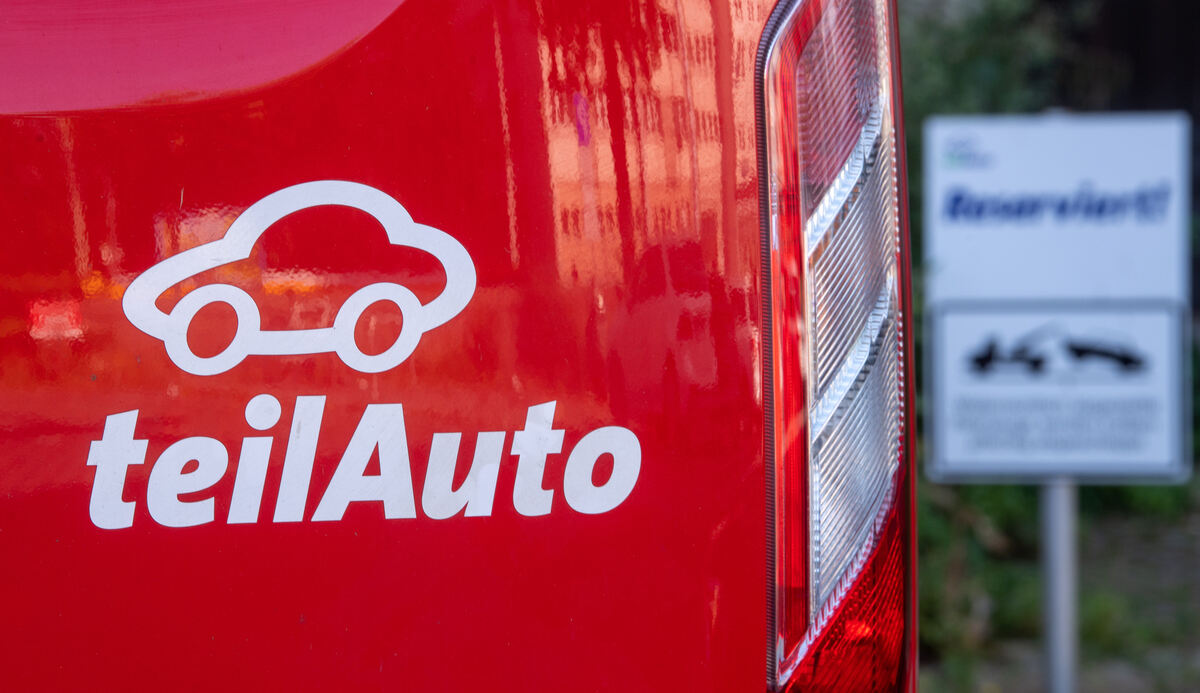 Ein Transporter des Carsharing-Anbieters Teilauto parkt an einer Station.
