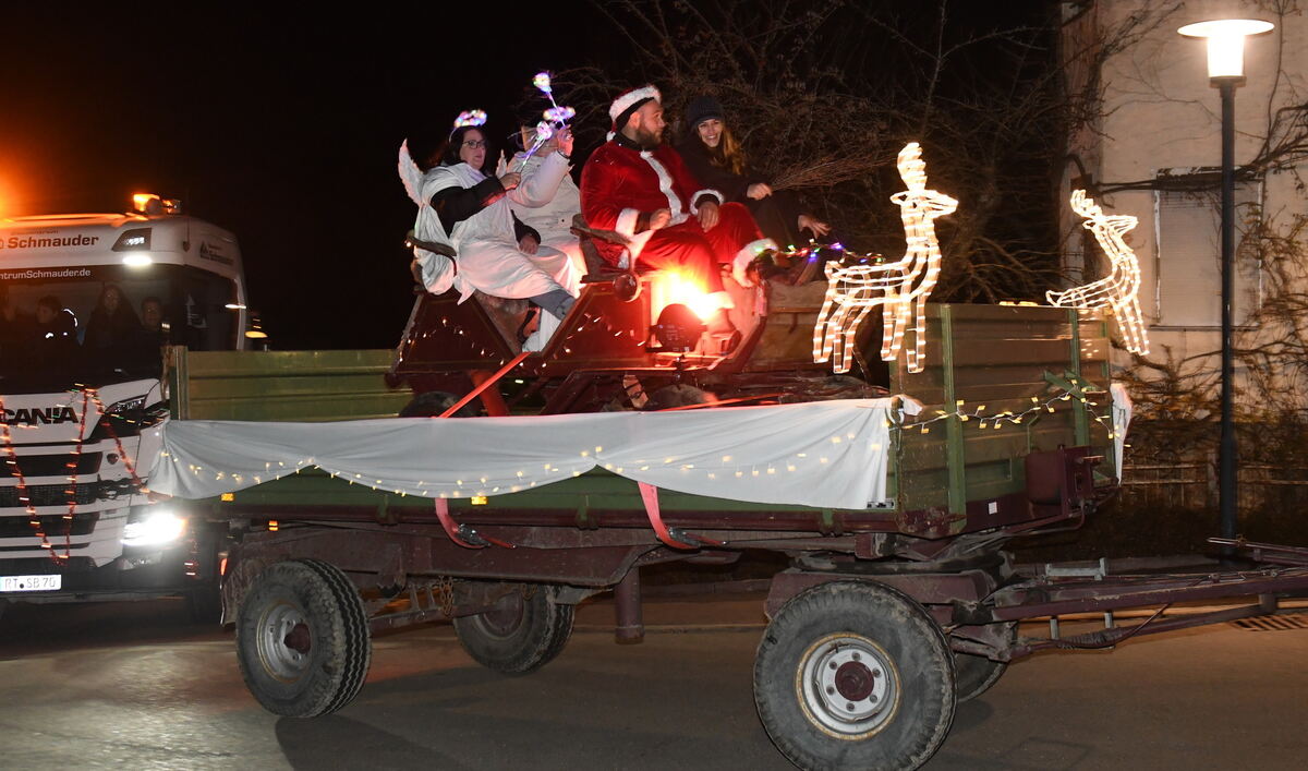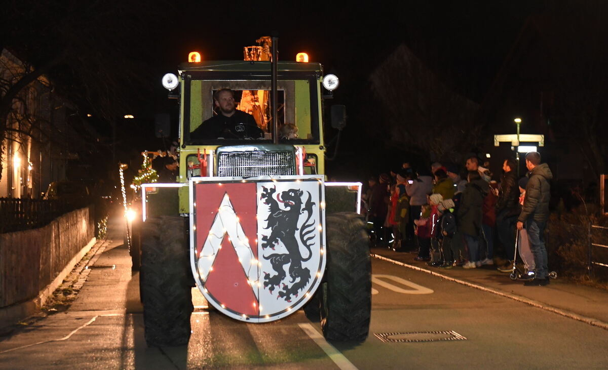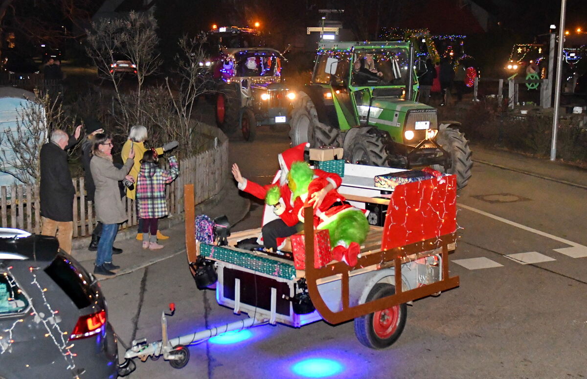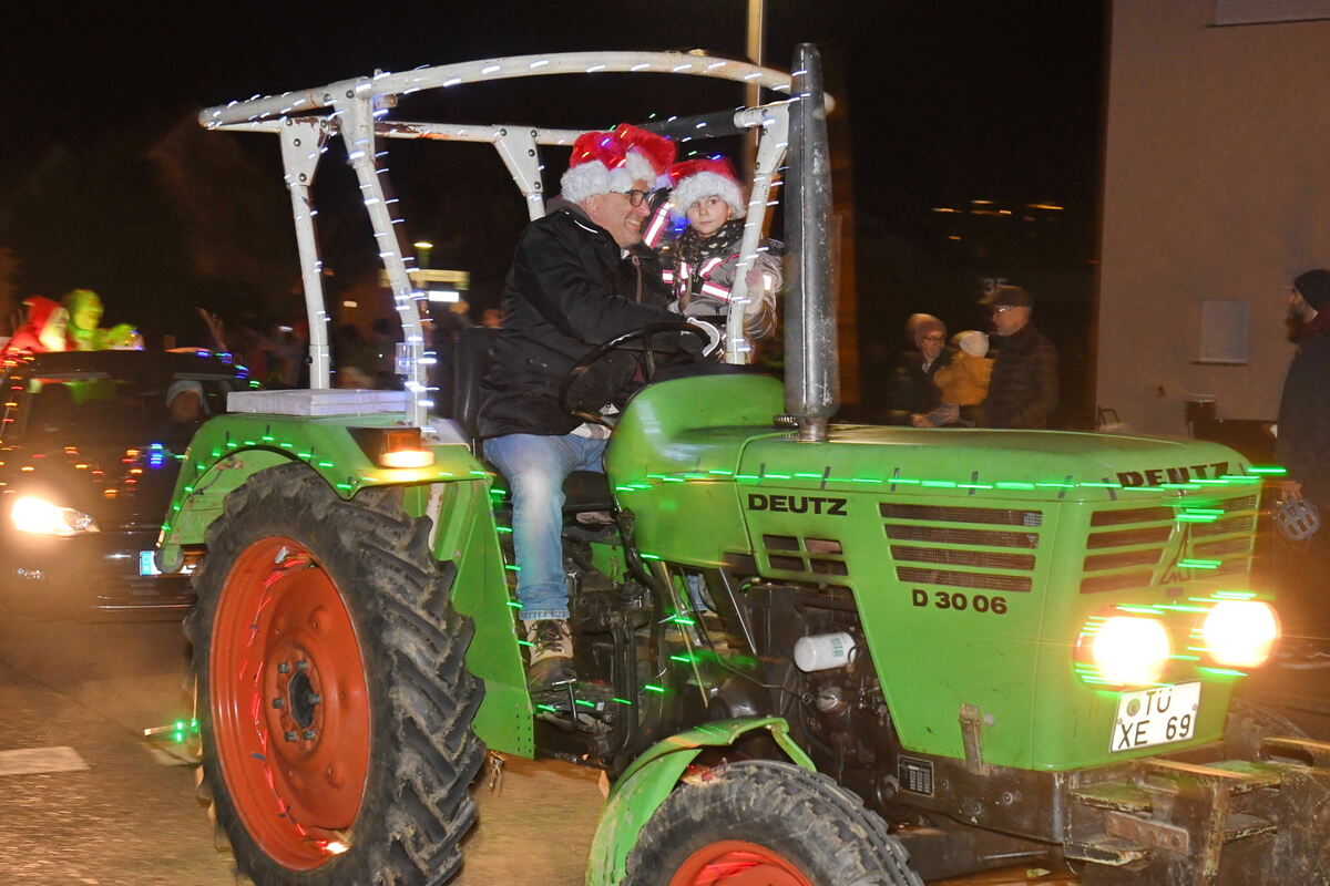 Hingucker waren wieder verkleidete Engel, der Weihnachtsmann mit dem von Nikolaus ausgeliehenen Knecht Ruprecht, die auf einer Kutsche saßen, die wiederum auf einem Hänger festgespannt war, der von einem Traktor gezogen wurde. Mehrere leuchtende Rentiere, einige ausgewachsene Tannenbäume, Plastik-Schneemänner und vieles mehr zogen bei dieser wundervollen Parade durchs Dorf. Zum Ausklang bei der Öschinger Hütte am Freibad gings dann feucht-fröhlich weiter. (GEA)