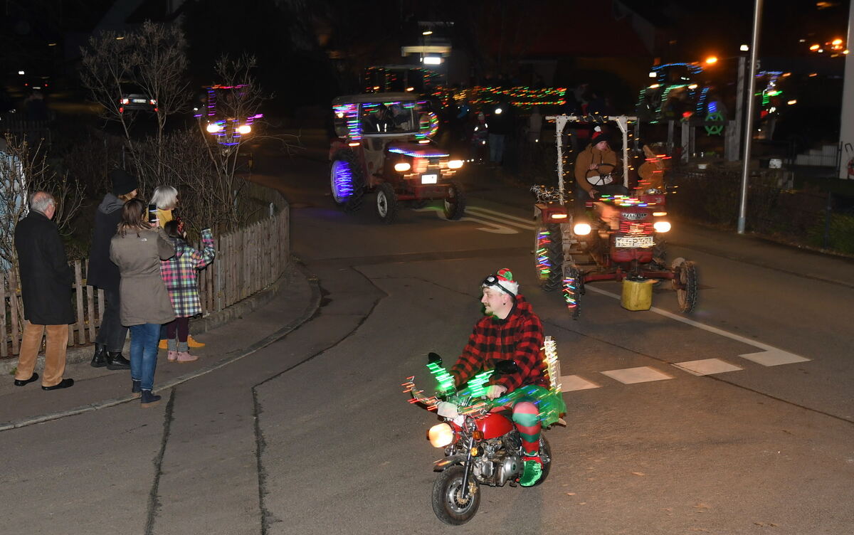 MÖSSINGEN-ÖSCHINGEN. Ein faszinierendes neues Brauchtum breitet sich am letzten Advent-Wochenende republikweit aus. Was 2020 als spontane Idee zur Aufmunterung in den dunklen Zeiten des Lockdowns während der Corona-Pandemie begann, findet immer mehr Nachahmer: Illuminierte Traktoren, Autos, Lastwagen und Zweiräder fahren durch die Dörfer – einfach nur, um anderen, aber auch sich selbst, eine Freude zu bereiten. Denn mittlerweile geht es bei diesen Lichterfahrten auch darum, sein Fahrzeug so schön und einfallsreich wie möglich zu schmücken – und zum Vorjahr noch »einen draufzusetzen«.
