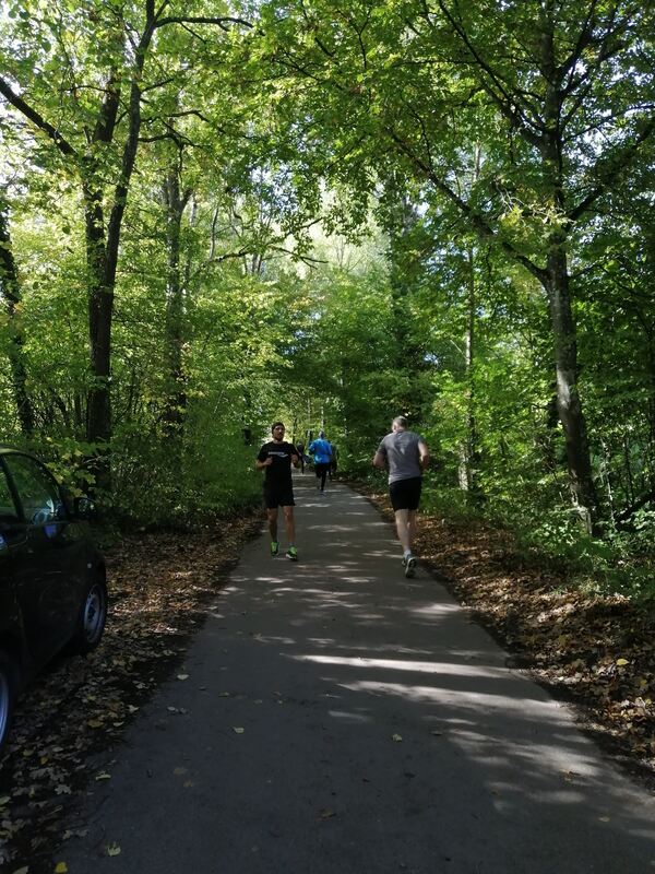 Teilnehmer des Projekts »ImPuls« beim Laufen, dem zentralen Sport des Projekts. »ImPuls«-Mitarbeiter Thomas Studnitz (links) läuft mit und greift unterstützend ein. FOTO: PRIVAT