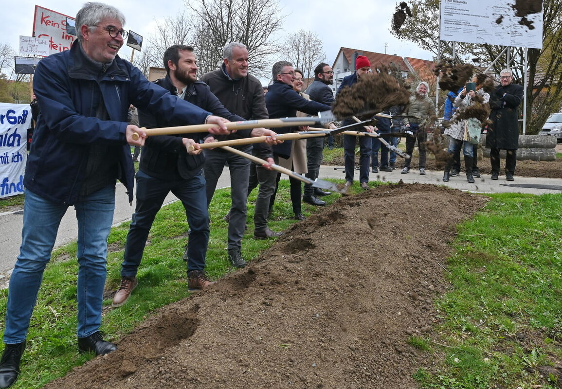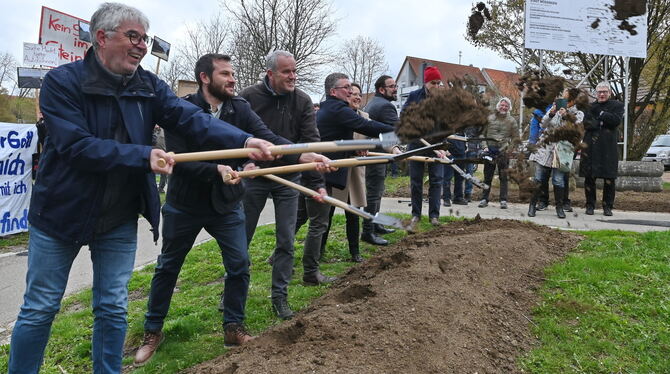 »Also alles zu lassen, wie es ist?«, fragte Oberbürgermeister Michael Bulander, und gab sich am Montag zugleich davon überzeugt, dass die Neugestaltung des Mühlegärtle-Parks an der Steinlach notwendig und sinnvoll sei. »Das ist vor dem Hintergrund des Klimawandels von entscheidender Bedeutung«, sagte er beim Spatenstich, zu dem ein halbes Hundert Gäste gekommen waren. Darunter auch einige Demonstranten, die die Landschaftsversiegelung durch den B 27-Neubau anprangerten. Bulander versprach ihnen augenzwinkernd, dass die Trasse zwar durchs Steinlachtal verlaufe, aber das Mühlegärtle nicht tangiere.