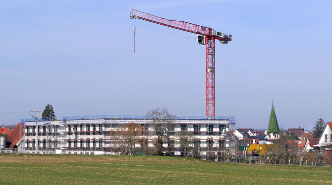 Das gilt auch fürs Betreute Wohnen vorn an der Straße, wo bislang erst das Erdgeschoss steht. Das Richtfest für die 24 barrierefreien Wohnungen sei geplant, aber noch nicht terminiert, teilt Claudia Winkler-Henze von der Sigmaringer Gesellschaft für Wohnungs- und Siedlungsbau Baden-Württemberg (GSW) auf Anfrage mit. Fertig soll dieser Gebäudeteil im März 2026 sein. (GEA)
