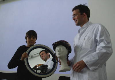 Von der Seite sieht so ein Helm doch ganz schnittig aus. Max (links) will jedenfalls nicht mehr ohne fahren. Oberarzt Martin Schuhmann wünscht sich, dass alle Radler so vernünftig sind.