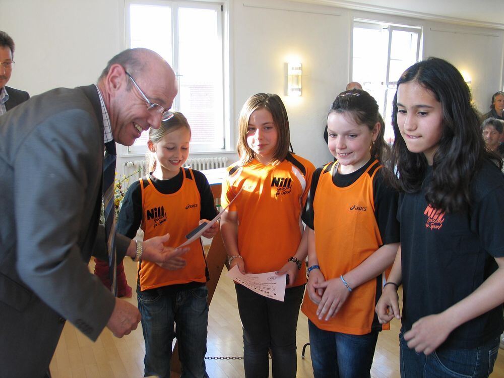 Gut unterwegs im Wald und querfeldein: Bürgermeister Manfred Schmiderer zeichnet die zweifache baden-württembergische Meisterin Tabea Walter aus.