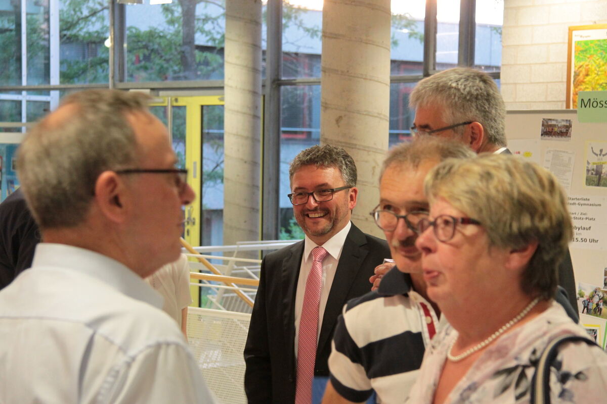 Offizielle Kandidatenvorstellung zur OB-Wahl in Mössingen in der Aula des Quenstedt.Gymnasiums mit sich anschließendem Umtrunk im Foyer. Michael Bulander (Mitte) war bei der Wahl am Sonntag, 1. Juli, der einzige Kandidat. FOTO: MERKLE