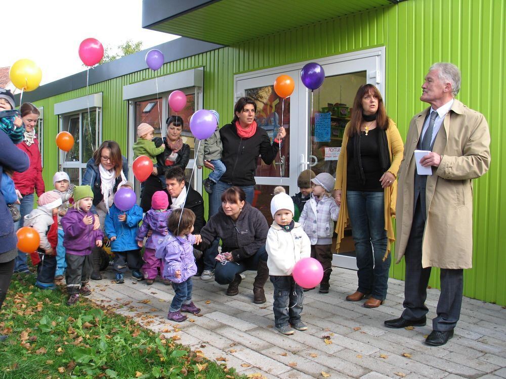 Mit Raummodulen haben die Ofterdinger inzwischen Erfahrung. Die Bambini-Gruppen in der Ursulastraße nutzen diese Möglichkeit (hier eine Aufnahme von der offiziellen Übergabe 2012) und auch die Burghofschule. GEA-ARCHIVFOTO: -JK