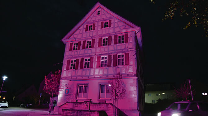 OFTERDINGEN. Auch die Niagara-Fälle und die Neckarfassade erstrahlten schon lila. Dieses Jahr hatte sich der Tübinger Verein Lichtblick das schönste Fachwerkgebäude in Ofterdingen als Dran-Denken-Stätte ausgesucht. Unentgeltlich unterstützt von der Feuerwehr, wurde gestern die Rathaus-Fassade für zwei Stunden in leuchtenden Violett-Tönen illuminiert. Mit dem lila Leuchten machen Elternvertreter seit 2008 am »Frühchentag« darauf aufmerksam, dass weltweit jedes zehnte Kind eine Frühgeburt ist – mit großen Schwierigkeiten für das Kind und Sorgen für die Familien. »Niemals getrennt!« – das diesjährige Motto gewinnt pandemiebedingt besondere Bedeutung. Der Tübinger Frühchenverein kümmert sich um Angehörige dieser Kinder. (GEA)