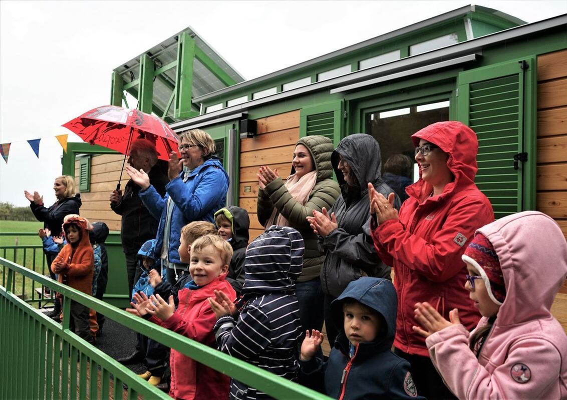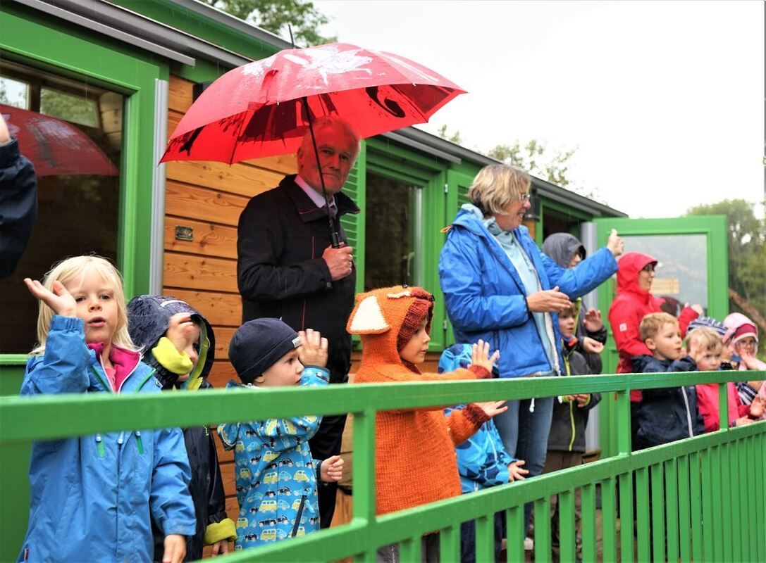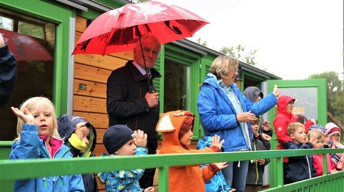 »Das ist genau das richtige Wetter, um einen Waldkindergarten zu eröffnen«, sagte Bürgermeister Joseph Reichert über den Regen zur Eröffnung am Mittwochabend. Er schwärmte von der schönen Lage im Steinlachtal und am Albtrauf und dem Blick hinunter auf Mössingen. Die Anschaffung des Wagens kostete 70.000 Euro, für die Photovoltaikanlage auf dem Dach, Erschließung und kleinere Arbeiten fielen noch einmal 70.000 Euro an - für die Gemeinde vergleichsweise günstig. Im Waldkindergarten sollen die Kinder vor allem nahe an der Natur sein und erleben, was ihren Bedürfnissen entspricht, wie Leiterin Maresa Viviani erklärte.