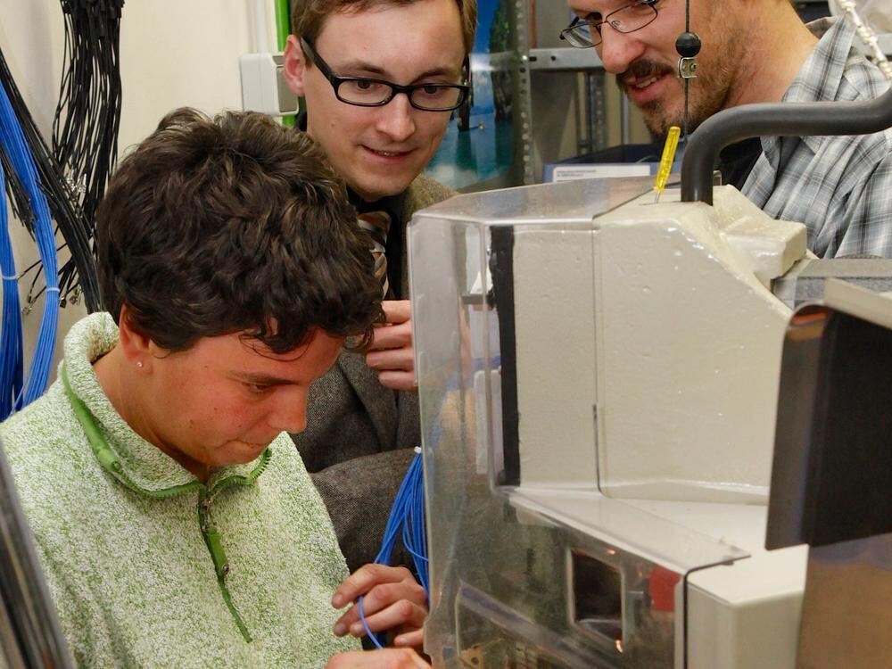 Der Rathaus-Chef ließ sich einiges zeigen: Steffen Heß (Mitte) mit Stephanie Karle und Gruppenleiter Reinhold Leuze (rechts).