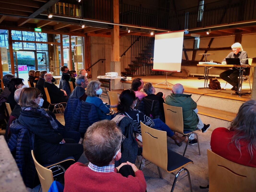 Viele Zuhörer wollten wissen, wie der in Kusterdingen lebende Friedensforscher Thomas Nielebock den Ukraine-Krieg sieht. FOTO: GOERLICH