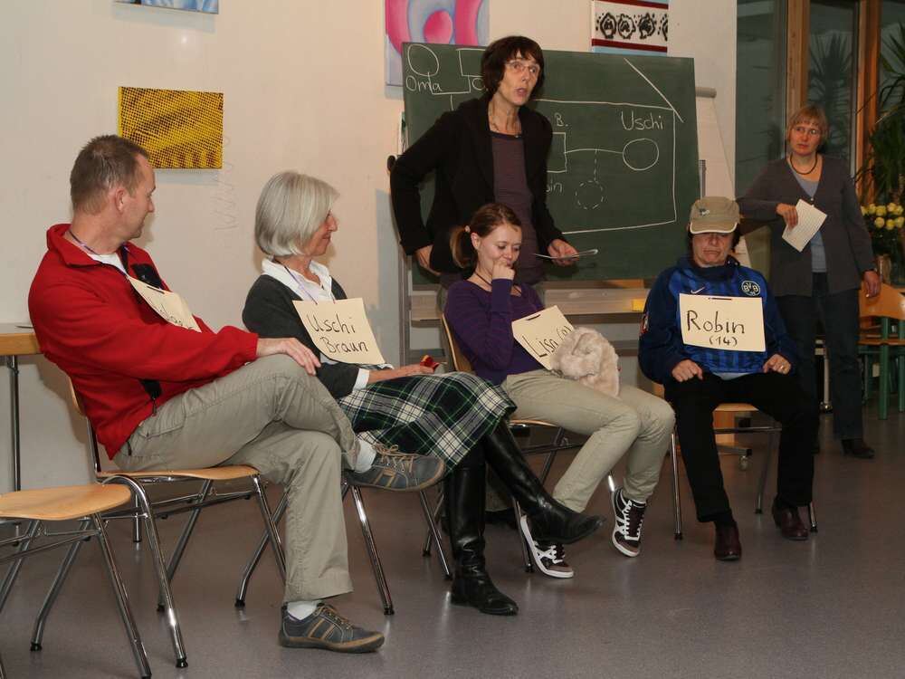 Beim Rollenspiel den Konflikten in der Patchworkfamilie auf der Spur: Renate Oetker-Funk (Mitte, stehend) verleiht Familienmitgliedern eine Stimme.