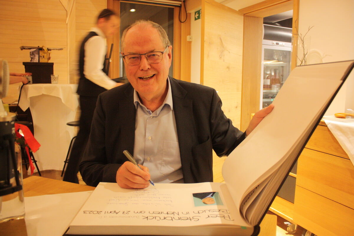 Ein Eintrag ins »Goldene Buch« Peer Steinbrück beim Gespräch in Nehren. FOTO: STURM