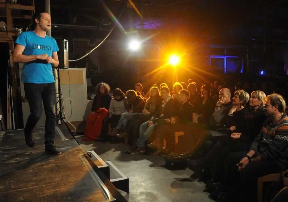 Vernünftiges Trinken will gelernt sein: Kabarettist Philipp Weber gab in der ausverkauften Echaz-Schreinerei Tipps zum Thema.