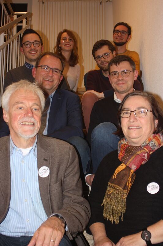 Die Kandidaten des Bezirks Tübingen für die evangelische Landessynode 2019: linke Seite (von unten) Martin Ulrich Merkle, Steffen Kern, Christoph Naser, Prisca Steeb. Rechte Seite von unten: Birgit Auth-Hoffmann, Martin Böger, Hans Probst, David Lehmann. Foto: Sturm