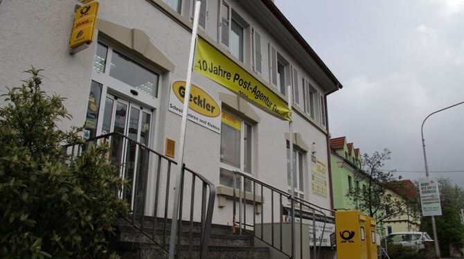 MÖSSINGEN.Das Plakatband vor der Tür hängt noch. Im vergangenen Jahr feierte die Postagentur Geckler in der Mössinger Bahnhofstraße bereits ihr zehnjähriges Bestehen. Sie sitzt in dem Haus, in dem sich die Deutsche Post im Jahr 2006 selbst in einer Stadt von der Größe Mössingens aus der Fläche zurückgezogen hatte und wie in kleinen Orten das Geschäft über Postagenturen schrittweise privatisierte.
