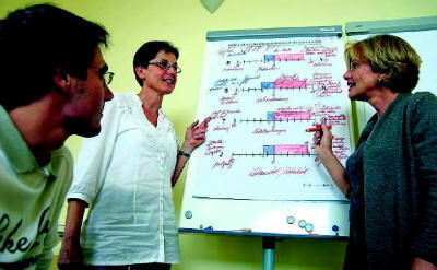 Private Berufsberatung in Tübingen: Andrea Feuerbacher (rechts) und Sabine Ertel mit einem ihrer Schüler.