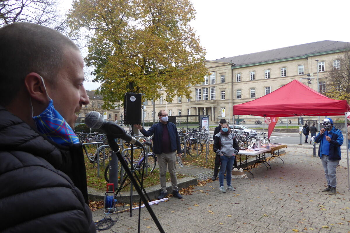 Das Rektorat, so befürchten die Aktivisten des DGB, der IG-Metall und der Hochschulgruppen von Ver.di und GEW, soll das Recht bekommen, bei sogenannten Ordnungsverstößen von Studierenden, eine Reihe an Ordnungsmaßnahmen vollstrecken zu können, die bis zur Zwangs-Exmatrikulation reichen können. Zudem wenden sie sich gegen ein geplantes Verschleierungsverbot auf dem Campus, das - so hieß es bei den drei Rednern - »mehr Probleme schafft als es löst«.