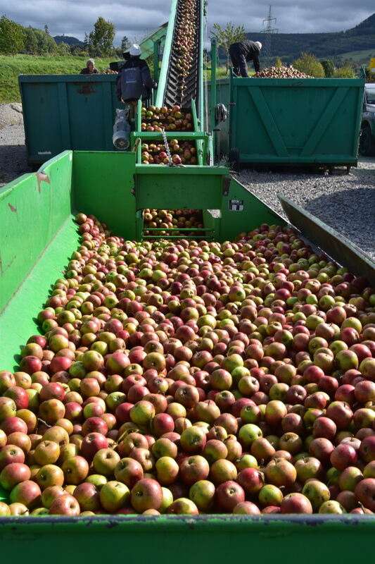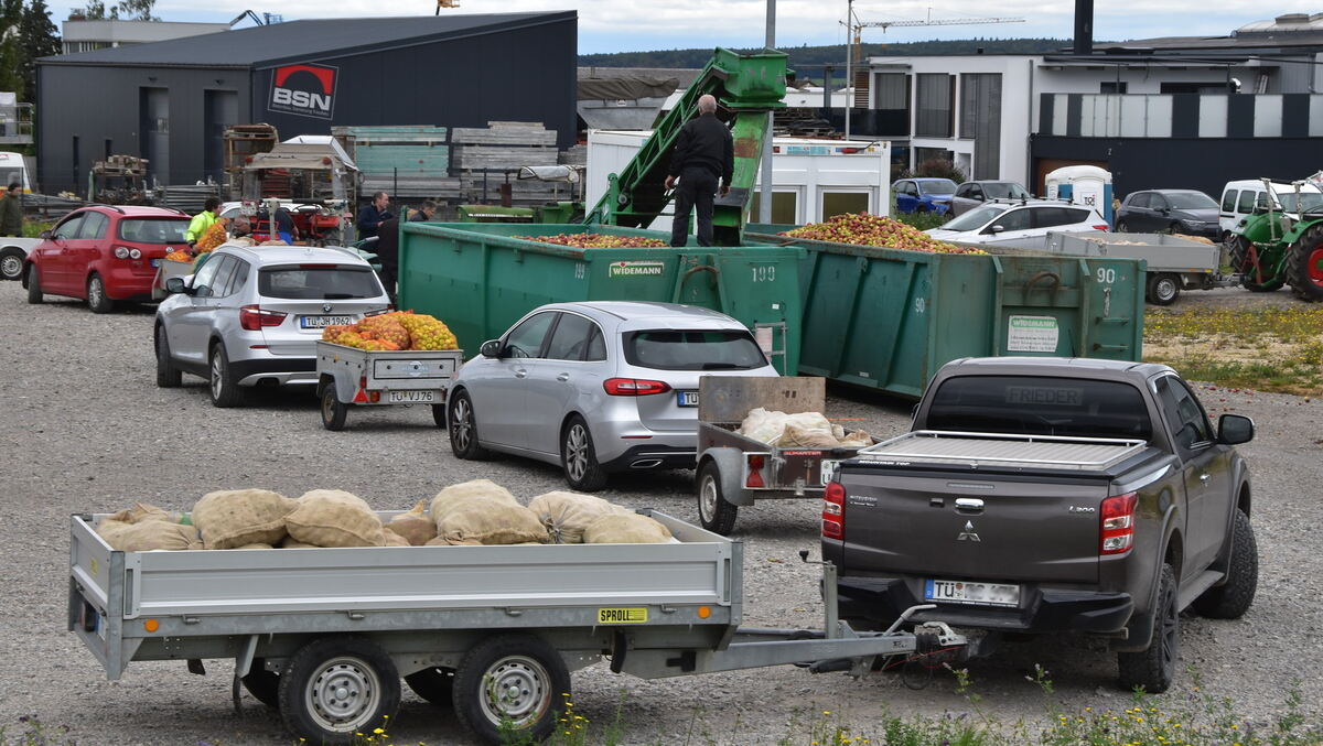 MÖSSINGEN. Das Statistische Bundesamt belegt, was jeder Obstbaum-Besitzer in diesen Wochen an den Abgabestellen selbst erlebt: Dieser Herbst, nach frostarmer, milder Blütezeit und ausbleibendem Sturm und Hagel, ist ein Kernobst-Rekordjahr. Bundesweit sollen geschätzt 1.009.000 Tonnen Äpfel geerntet werden, rund 16 Prozent mehr als im Vorjahr. Im Voralbgebiet, im Steinlachtal, liegt die Ernte allerdings weit über dem Durchschnitt. Das zeigt sich an den fast täglichen, rekordverdächtig langen Warteschlangen.