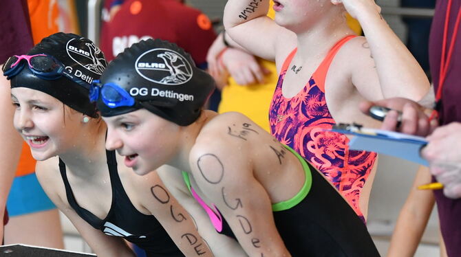 Junge Ermstaler Schwimmerinnen beim Anfeuern.