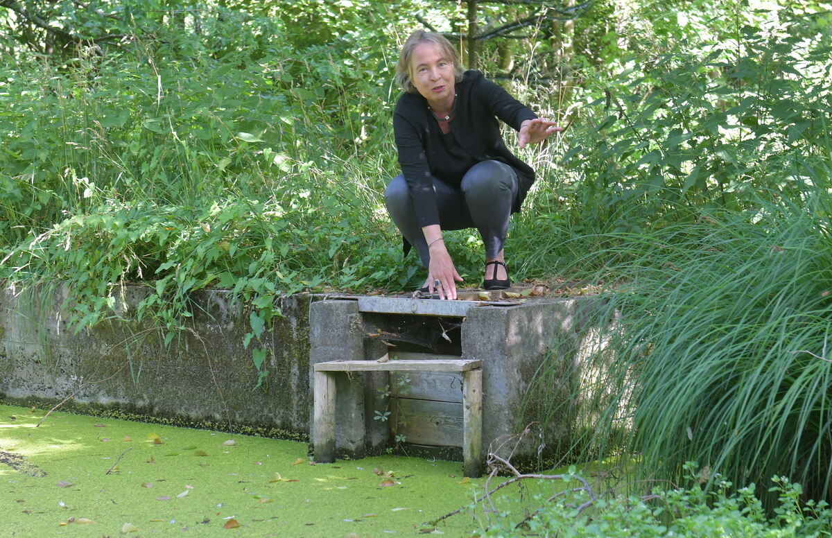 Kein Trinkwasserreservoir, aber Wohnort für viele kleine Lebewesen: Professorin Heidi Megerle am Teich der Hochschule Rottenburg. Foto: Meyer