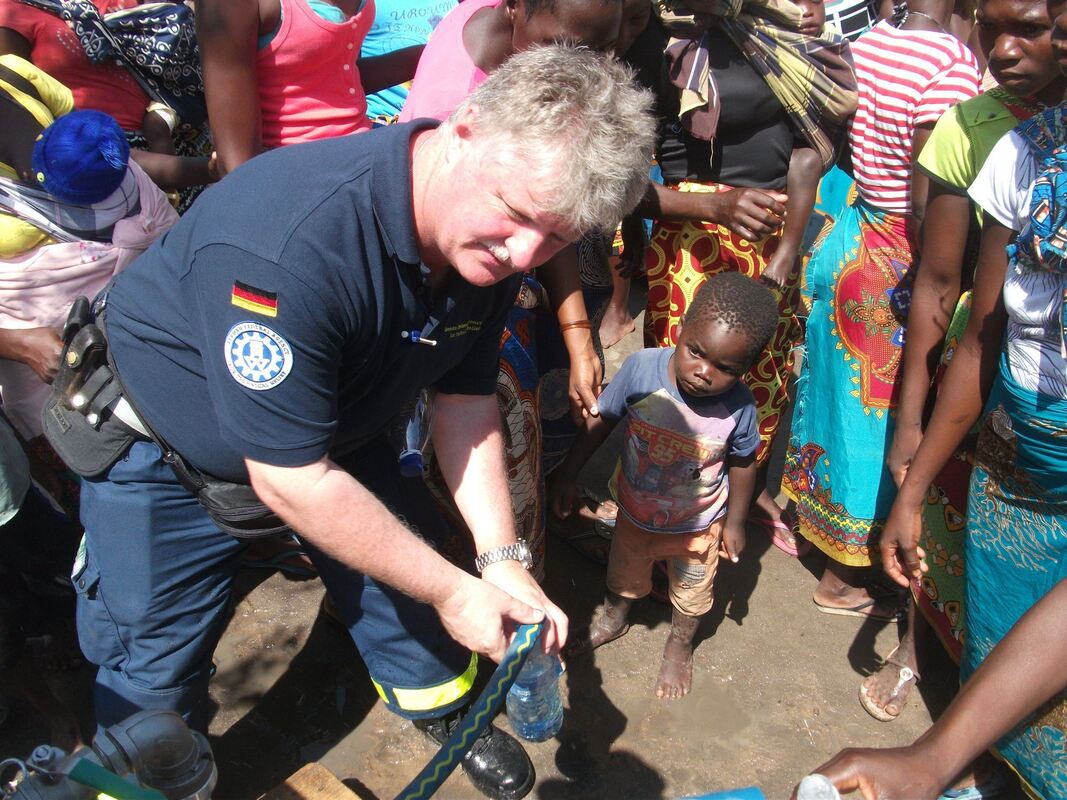 Thomas Wiedemann vom THW Ofterdingen sorgte nach der Überschwemmungskatastrophe in Mosambik dafür, dass die Einheimischen sauberes Trinkwasser bekommen. FOTO: THW