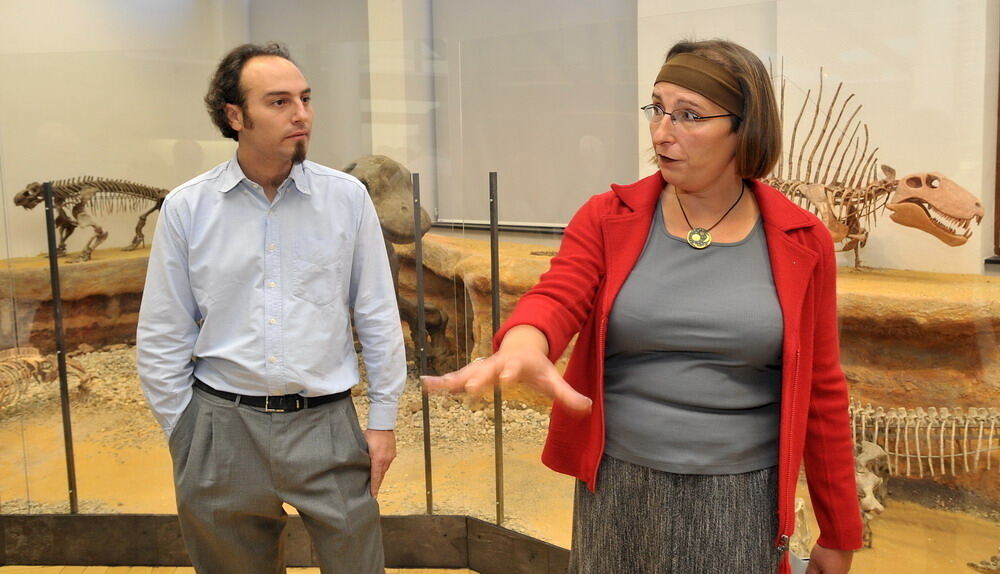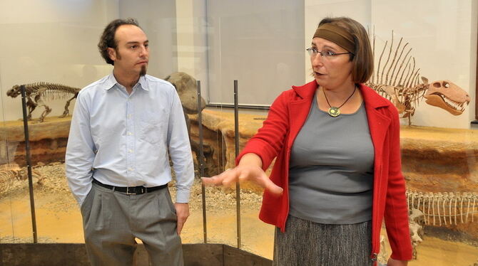 TÜBINGEN. Altes präsentiert im neuen Licht. Die paläontologische Sammlung der Uni Tübingen mit ihren Sauriern und anderen Urzeittieren wurde in den vergangenen 18 Monaten unter Federführung des dafür eingestellten Kustos Philipe Havlik neu gestaltet und vor allem neu ausgeleuchtet. »Wir sind jetzt das erste grüne Museum in Baden-Württemberg, ja in Europa, das komplett mit LED-Leuchten ausgestattet ist«, freut sich Professor Madelaine Böhme über ihr »grünes Museum«, das gestern von der grünen Wissenschaftsministerin Theresia Bauer offiziell neu eröffnet wurde.