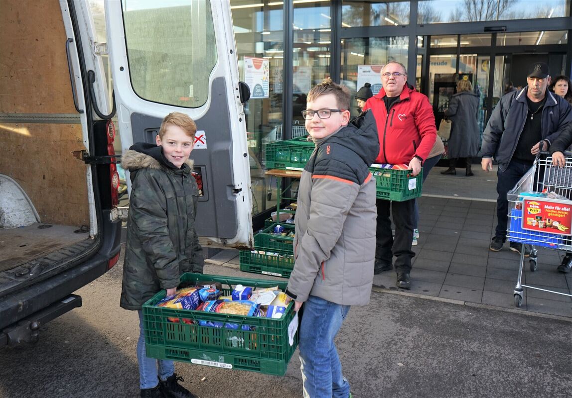 GOMARINGEN/NEHREN/DUSSLINGEN. Die Advents- und Weihnachtszeit ist für viele Menschen die schönste im Jahr. Für Wohnungslose kann sie besonders schlimm sein. »Man kann sich das gar nicht vorstellen, alleine bei der Kälte draußen zu sein«, sagte Robin Harm aus Nehren. Vielleicht nur mit einer Decke bibbernd irgendwo sitzen, hungrig. Zusammen mit seinem Freund Sean-Luca Nill stand der Sechstklässler am Samstag vor dem Lidl-Markt in Gomaringen. Ebenso wie 200 andere Schülerinnen und Schüler der Merian-Gemeinschaftsschule animierten sie Leute, etwas für Wohnungslose in Reutlingen und Tübingen zu spenden. »Wir haben uns freiwillig gemeldet, weil wie helfen wollen«, sagte Nill. Viele Leute spendeten Nudeln, aber auch Salz und Zucker, Konserven, Fertiggerichte, Kaffee und Tee. Hauptsache lange haltbar.