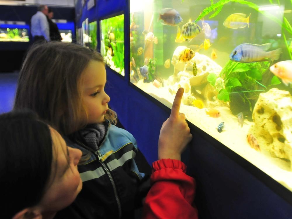 In rund 40 Glasbecken konnten Besucher bei der viertägigen Schau der Aquarien- und Terrarienfreunde im Mössinger Kleintierzüchterheim allerhand exotische Tiere aus der Nähe beobachten. Die kleine Tamara hat sich hier die Giraffenbuntfische angeschaut.