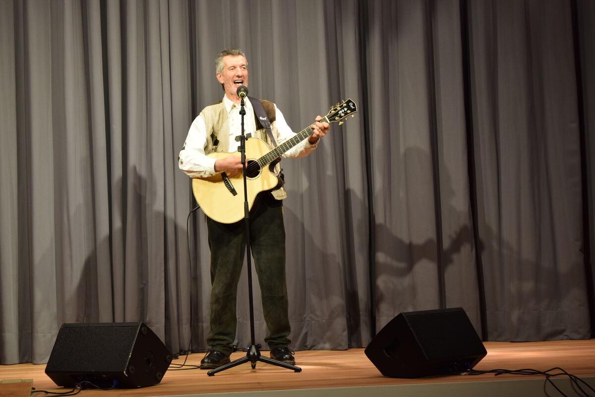 Sänger Oswald Sattler brachte bei seinem Auftritt im Quenstedt-Gymnasium das vorwiegend ältere Publikum mit seinen volkstümlichen Liedern zum Schunkeln. FOTO: JAENSCH