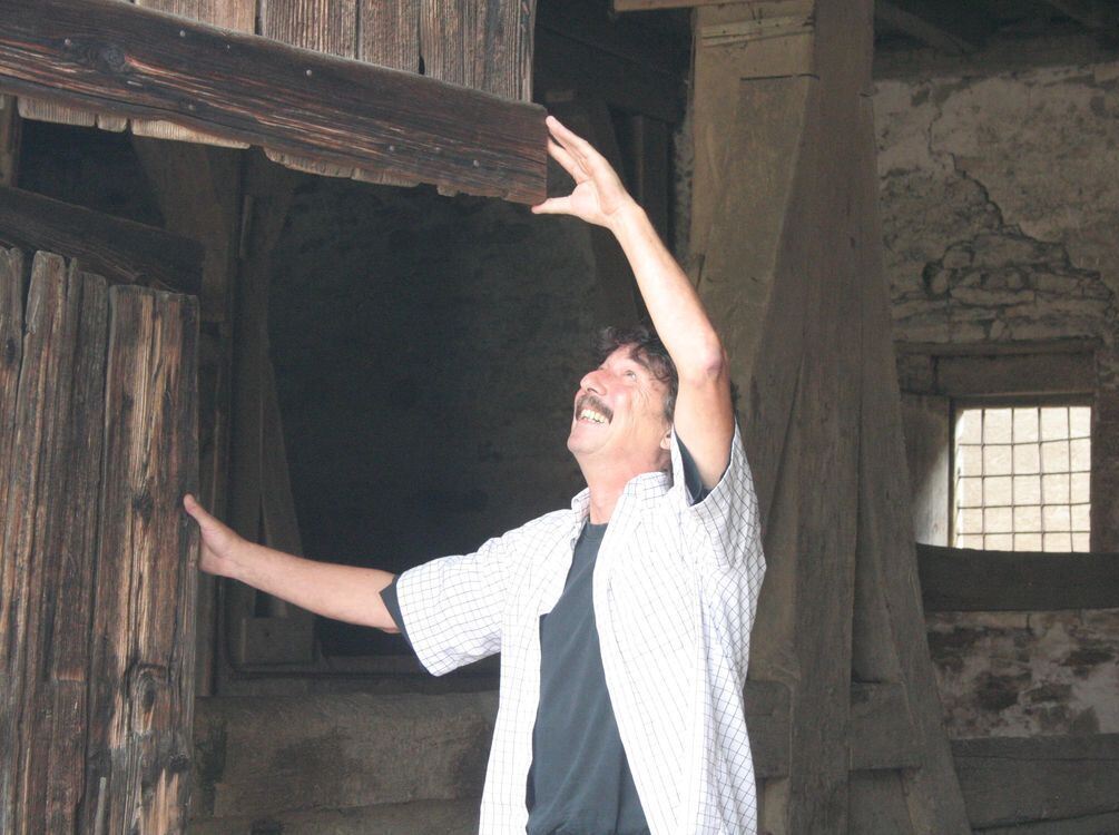 Gute alte Eiche: Architekt Gottfried Häfele prüft die Balken in der Schloss-Scheuer. Hier soll die Bibliothek einziehen. Der Umbau beginnt 2013.