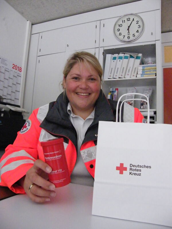 Friederike Schäberle mit der Rotkreuzdose, die mit ausgefüllten Datenblättern am besten im Kühlschrank untergebracht wird. FOTO: MAIER