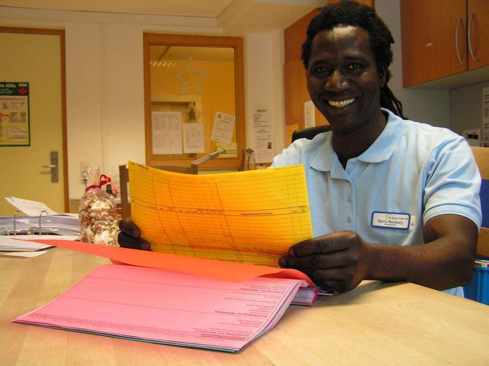 Boukary Barry im Übergabezimmer des Karolinenstifts in Tübingen, wo er eine Ausbildung zum Altenpfleger macht. Foto: Weber