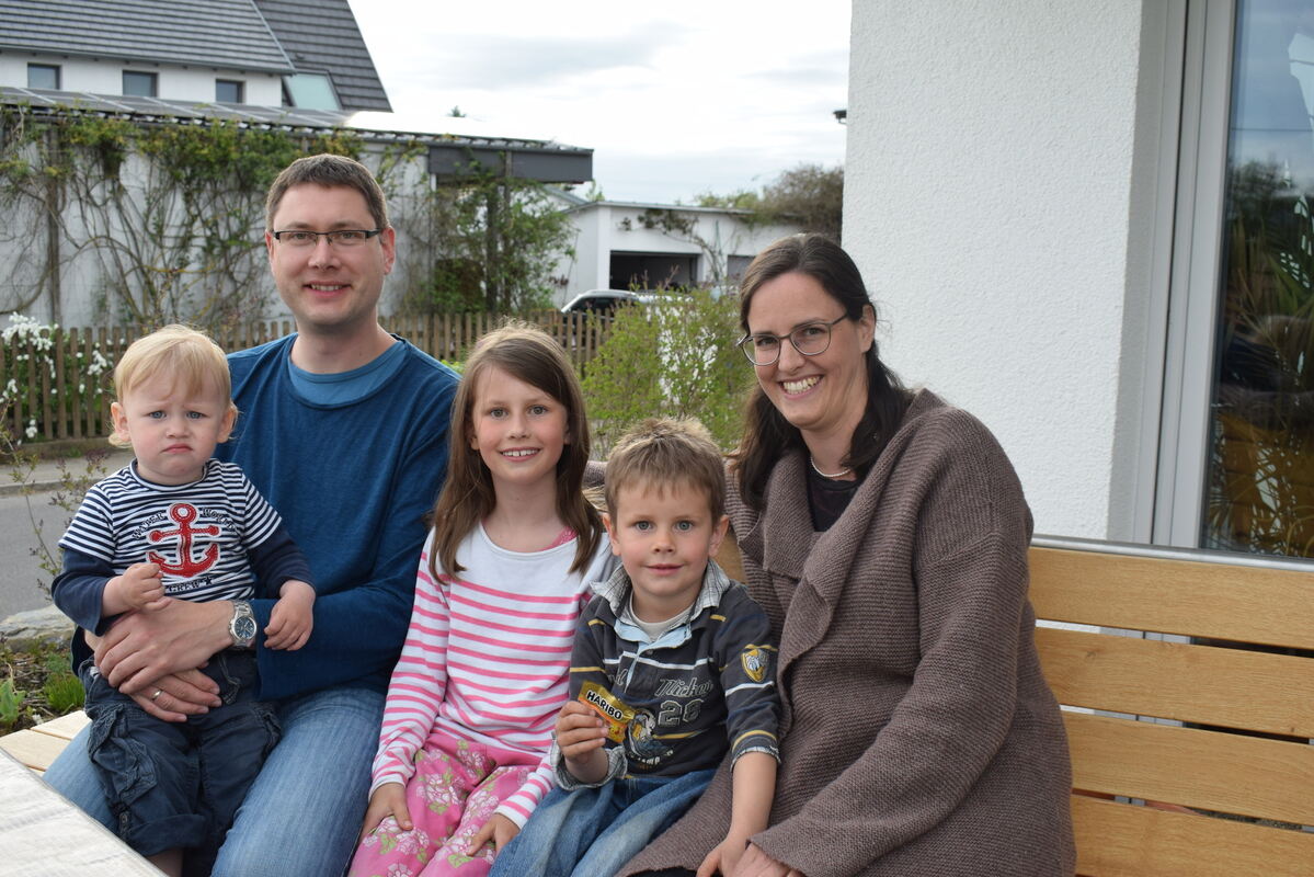 Interims-Pfarrerin Ulrike Bast mit ihrem Mann Benjamin und den drei Kindern Samuel, Eliana und Simeon in Mähringen.