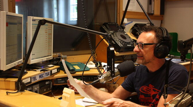 Matzel Xander im Studio der Wüsten Welle Tübingen, das im oberen Stockwerk des Sudhauses untergebracht ist. FOTO: STURM