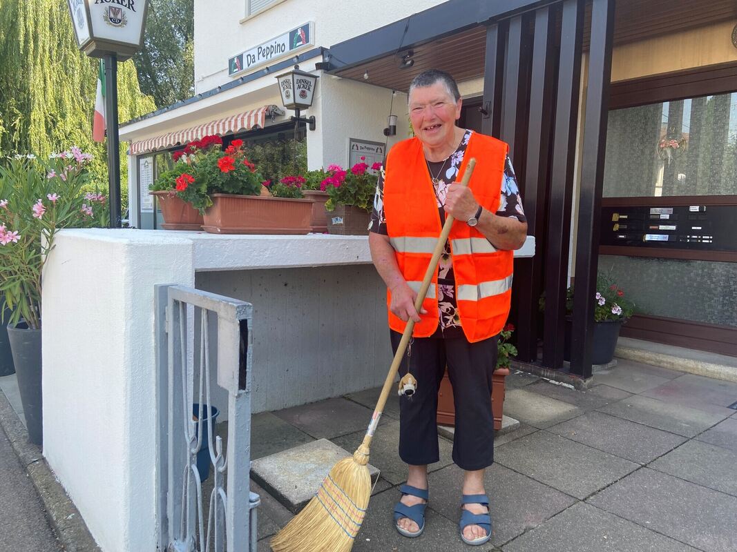 Mit ihrer knallorangenen Warnweste und dem Besen: So können die Gomaringer Anne-Rose Scheel tagtäglich erleben.