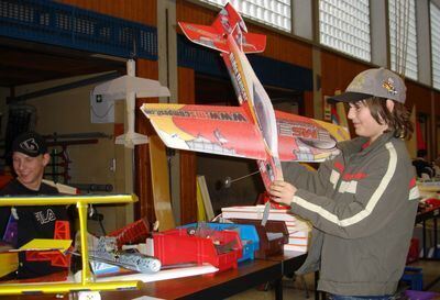 Besitzerstolz: Luca Frapporti mit Flieger beim Flohmarkt in Kusterdingen.