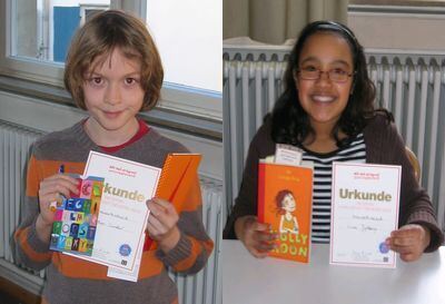 Tristan Linder (links) und Lisa Joffroy ziehen im April in den Bezirksentscheid des Vorlesewettbewerbs.