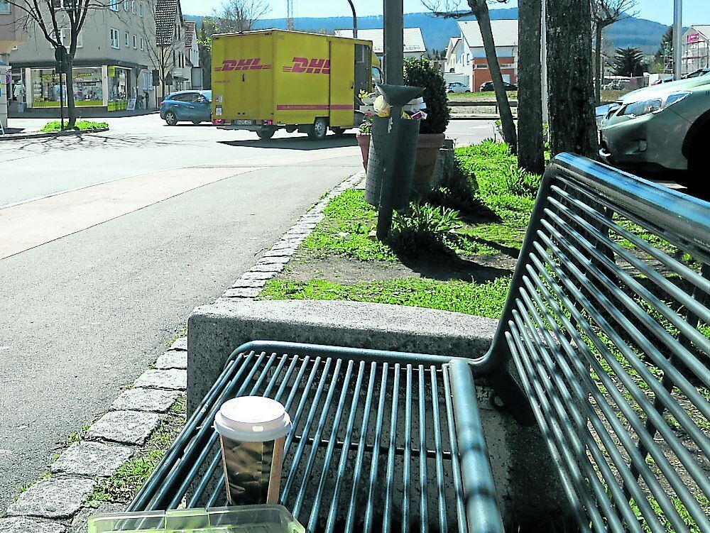 Die Mössinger Mitte Ecke Falltor-/Bahnhofstraße: Ein guter Platz für Pausen auf der öffentlichen Sitzbank? Bisher eher nicht. GEA-FOTO: MWM