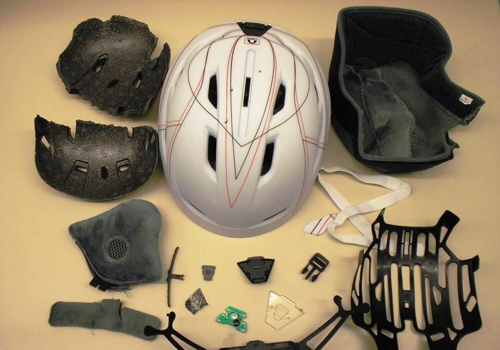 Genaue Prüfung durchs Regierungpräsidium: In Einzelteile zerlegter Skihelm. FOTO: RP TÜBINGEN