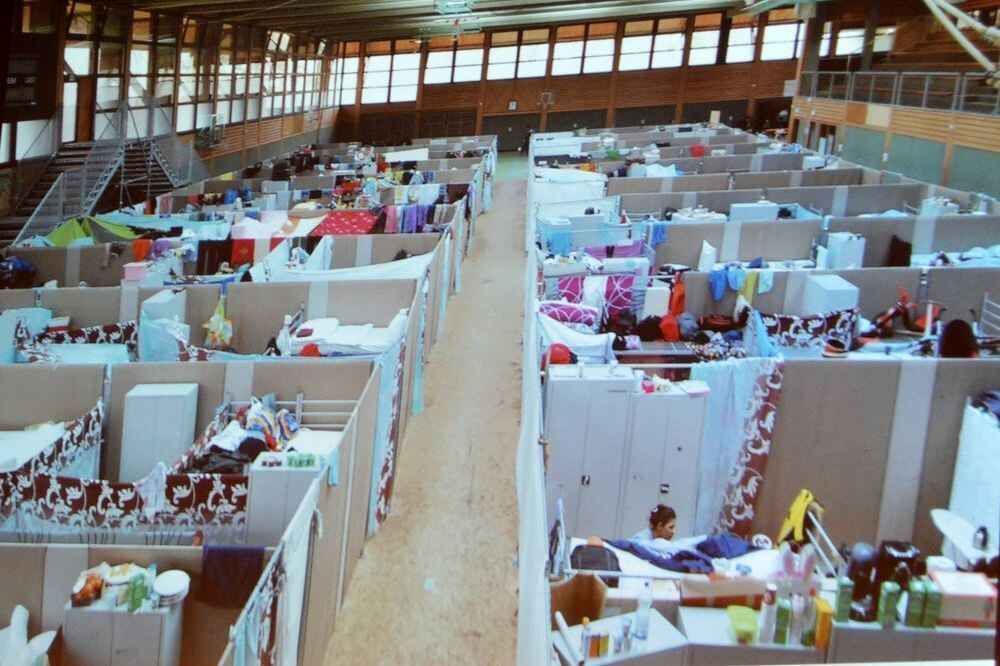 Voll, laut, keine Privatsphäre: Flüchtlinge in der Tübinger Kreissporthalle. ARCHIVFOTO: VEY